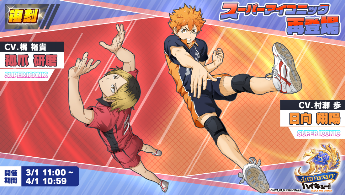 『ハイキュー!! TOUCH THE DREAM』3周年! 豪華声優出演の生放送&記念イベント開催!